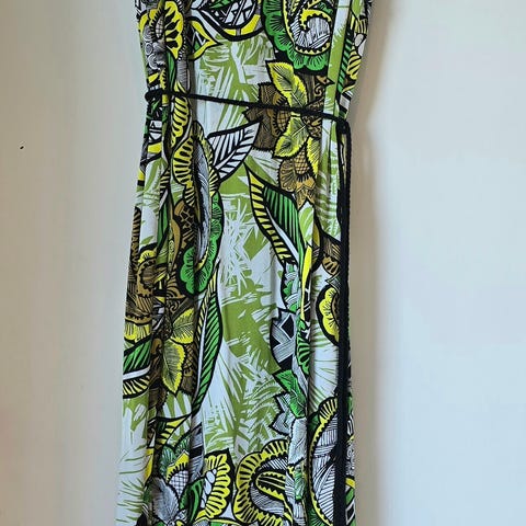 ❗️RESERVERT ❗️✨ SID OG VID KJOLE MED STORT MØNSTER I GRØNT - 100% VISKOSE 🌿