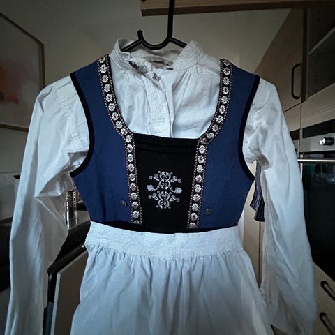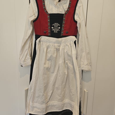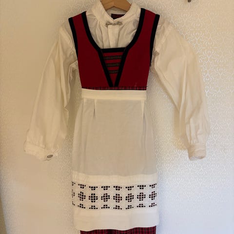 Selges med skjorte, forkle og cape.