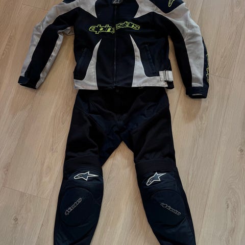 Veldig lite brukt kjøre klær. Brukt kun noen få dager. Bukse og jakke med glidelås i livet så den blir som tett dress. Kjøpt ny i 2010, vært lagra innendørs, kjølig og mørkt ( og musfritt). Lengde på meg ca 190 cm, og var vel ca 80 kg da dette ble kjøpt. Prisantydning er veiledene, så er åpen for bud