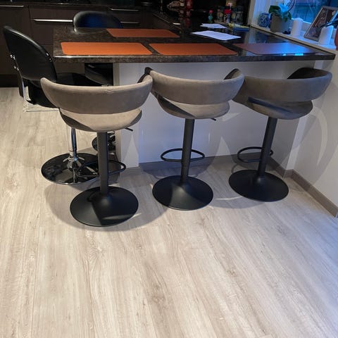 Høy komfort: Stolene har god polstring, ryggstøtte og fotstøtte, samt gasslift for enkel høydejustering.