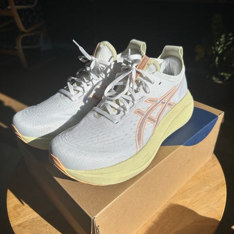 Helt nye Asics gel nimbus 27 i strl 41,5 selges. Aldri vært brukt, helt nye med lapp på. Har også kvittering. Selges da jeg har for mange sko og skal flytte. Størrelsesmessig har jeg alltid brukt 40,5 i Asics gel nimbus, men har måttet gå opp en halv til en størrelse i de siste modellene etter 25. Nypris 2200 kr, selges for 1600 kr.