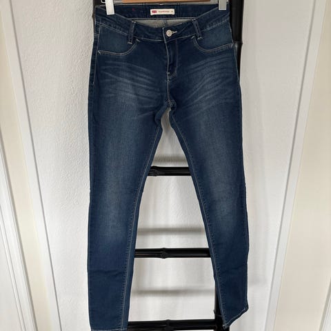 Levi's 512 jeans for gutt i størrelse 176. Bukse i blå denim med smal passform og stretch. Klassisk femlommersmodell med knapp og glidelås i front, beltehemper i linningen og karakteristiske baklommer med sømdetaljer. Egnet som hverdagsbukse til gutt.