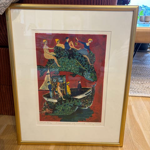 Litografi Pan av Elling Reitan. Mål: 53 x 66 cm. Innrammet.