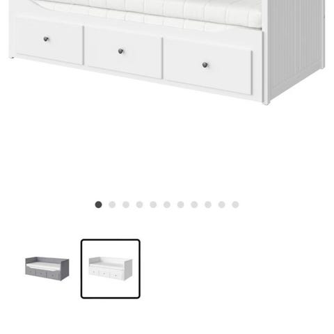IKEA dagseng med oppbevaringsskuffer i hvit utførelse. Sengen har to romslige skuffer under liggeflaten som gir ekstra oppbevaringsplass til sengetøy eller annet utstyr. Passer som enkeltseng eller dagseng i soverom, gjesterom eller stue. Utført i hvit overflate som gjør den enkel å kombinere med ulik innredning.