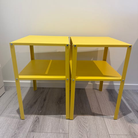 2 stk knarrevik nattbord, det ene har en bulk slik du ser på bilde. Men funker som det skal.