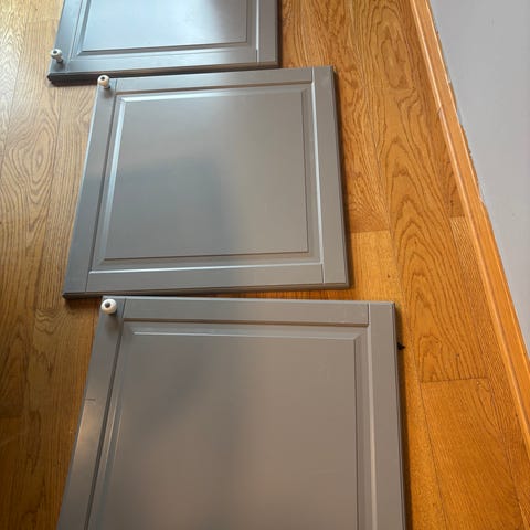 IKEA Bodbyn grå fronter til hjørne benkeskap ( karusellskap). Hengsel på høyre side. Jeg har to sett. Pris pr sett.