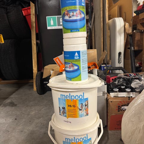 Nitor bassengkjemi sett til svømmebasseng. Pakken inneholder flere ulike kjemikalier til vedlikehold og rengjøring av bassengvann, blant annet midler til justering av vannkvalitet og rengjøring. Produktene brukes til desinfisering, balansering av pH-verdi og generell vannpleie i private svømmebasseng. Egnet for bruk i utendørs basseng i henhold til anvisning på hver enkelt beholder.
