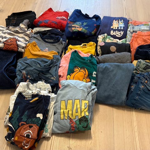 Det er noe ulike størrelser på klærne, som xxs eller 158, men alt er brukt på samme tid og vil si det meste er 146/152.