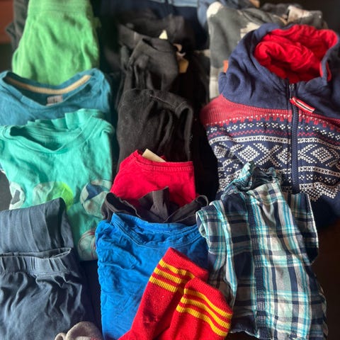 4 overdeler langermet, 1 helly hansen trøye, 1 tynn ulltrøye refleks, 2 trenings t-skjorter, 1 shorts, 1 jeansjakke, 1 tynn vindjakke