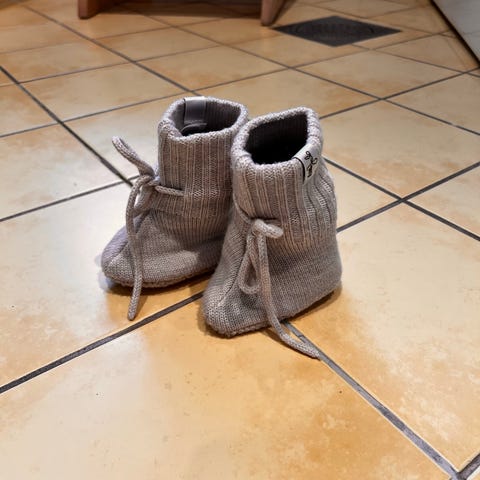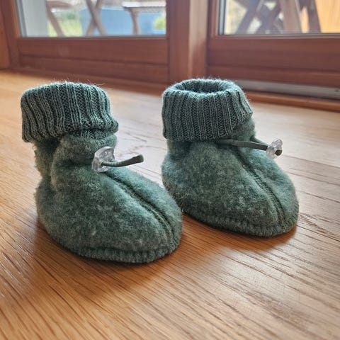 Tøflene er ribbestrikket og har justerbar stramming.😊