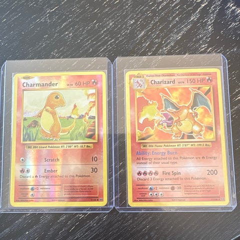 Selger et veldig populært sett med Charmander + Charmeleon fra Hidden Fates (Shiny Vault) 🔥