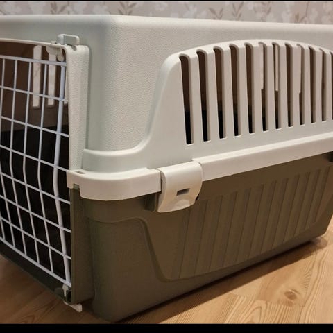 Selger et Skudo 4 transportbur (68 x 48 x 51 cm), IATA‑godkjent bur til fly, bil og tog. Buret er laget i Italia av slitesterk, slagfast plast og er svært robustt – passer til hunder eller katter opp til ca. 30 kg.