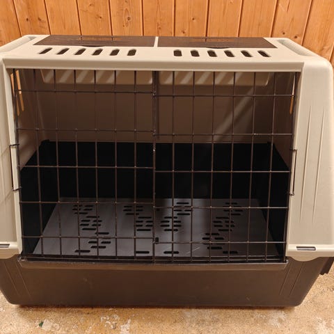 Nypris for tilsvarende bur uten hjul er 1899 kr ( https://mikopet.no/skudo-4-transportbur-iata-68x48x51cm.html ), pluss IATA‑sett og 3 hjul i tillegg. Jeg selger hele pakken for kun 600 kr.