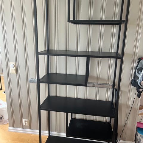 Pent brukt hylle med glassplater på di midterste hyllene.