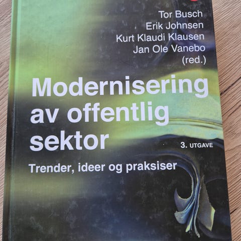 Universitetsforlaget Modernisering av offentlig sektor lærebok i samfunnsfag. Boken tar for seg modernisering av offentlig sektor med vekt på trender, ideer og praksiser. Egnet som pensumlitteratur eller fagbok innen samfunnsfaglige studier, særlig offentlig administrasjon, statsvitenskap og organisasjonsfag.