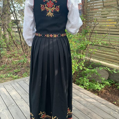 Selger min fine Nedre Buskerud bunad. Den er håndbrodert og montert i Norge.