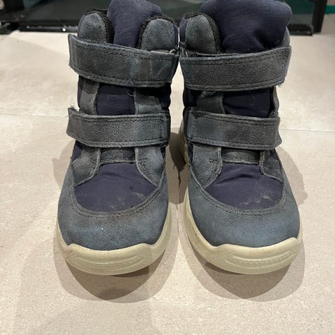 Omtrent nye vintersko fra Ecco. Kun blitt brukt 2-3 ganger da de ble kjøpt før sesong og ble for små. Ser på bildene at de kan se slitt ut, men det er fordi de har deler med semsket skinn som ikke ble så bra på bildene.