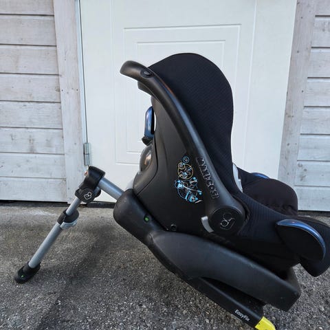 Maxi-Cosi bilsete til baby for vektklasse 0–13 kg. Setet leveres med base som festes i bilen, og bilstolen klikkes enkelt av og på basen. Modellen er bakovervendt og har bærehåndtak, justerbar internsele og hodestøtte til baby. Trekket er i mørk/svart tekstil. Egnet fra nyfødt og opp til ca. 13 kg, avhengig av barnets høyde og vekt. Kan brukes i bil som godkjent babystol og tas ut av bilen for bæring av barnet. Ikke vært i bilulykke.