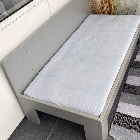 Blitt brukt av mine to barn, madrass og laken kan òg følge med om ønskelig. Må hentes. Målene er ca 45x90