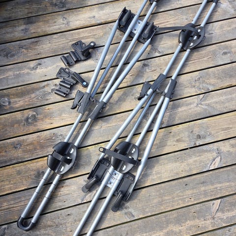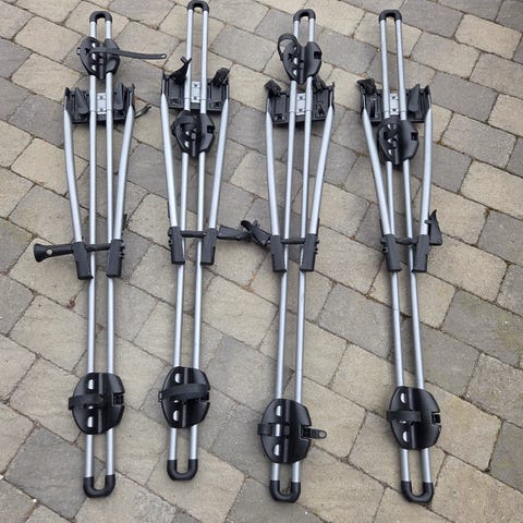 Sykkelstativene festes på takstativ/takrails og er beregnet for transport av sykler på biltak. Konstruksjon i metall med plastdetaljer. Stativene har hjulholdere og rammefester med reimer for å sikre sykkelen under transport.