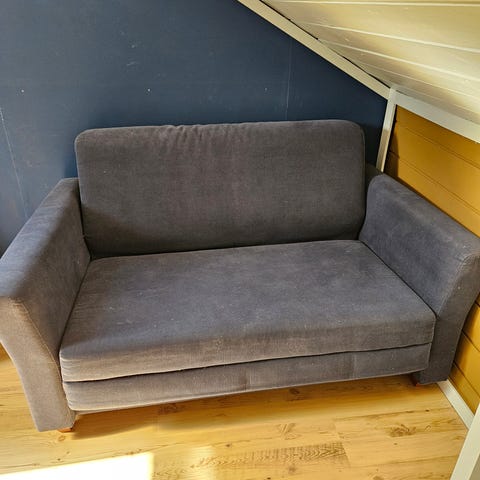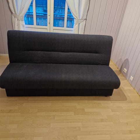 En endte sovesofa gis bort. Denne har ptaktisk oppbevaringsrom under, men trenger en skikkelig vask. Ingen kjente skader, og fungerer som den skal.
