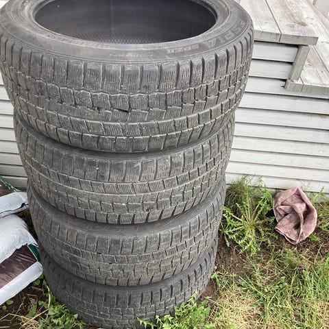 Selger et sett med vinterdekk med felg. Dekk er relativt nye og har 7mm mønster igjen på alle dekk. Den ene felgen har sprukket, se bilde 3.