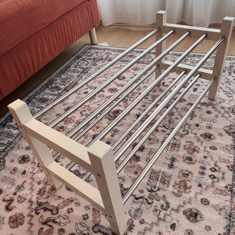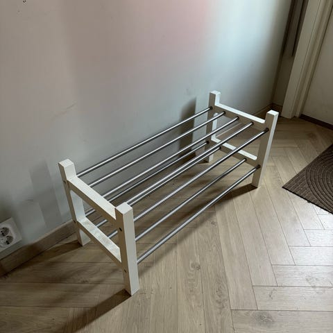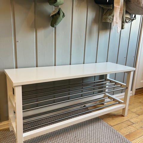 Selger en hvit skohylle fra ikea, modell tjusig. Burde muligens vaskes over med en klut, men fungerer helt fint. Må hentes 1 eller 2 mai i Trondheim