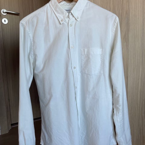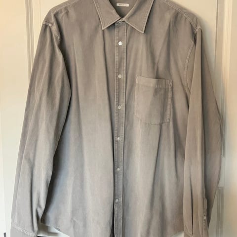 Arket skjorte i flanell for herre i størrelse 44. Skjorten er beige og har klassisk krage, knappelukking foran og en brystlomme. Modellen har relaxed fit, som gir en noe romsligere passform. Materialet er myk flanell som egner seg godt til bruk i kjøligere vær. Passer til hverdagsbruk og kan kombineres med både jeans og chinos.