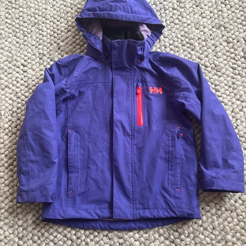 Pent brukt skalljakke fra Helly Hansen i str 128. Vindtett og vannsøyle på 10.000. Avtagbar hette.