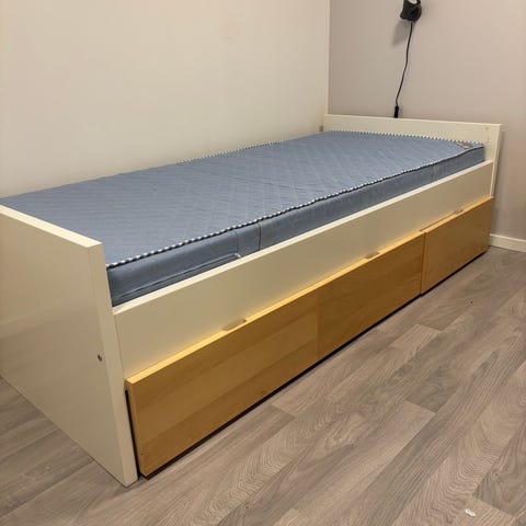 Seng frå Ikea, pent brukt og utan madrass, gjevast bort mot henting. Senga er 1,40m brei.