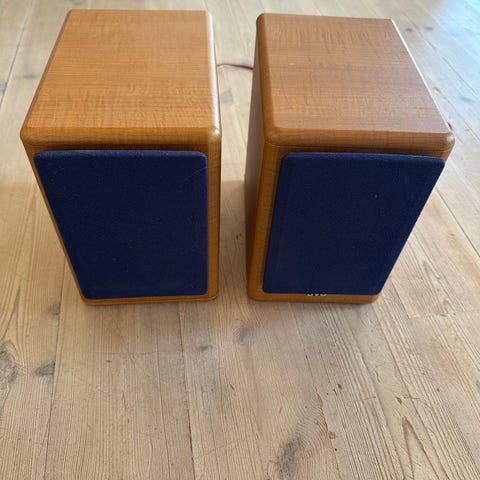 Hitachi HS-R30 høyttalere. Passiv høyttalerpakke med to høyttalere i trefinish. Modellen har en impedans på 6 ohm og maksimal inngangseffekt på 50 watt (music signal peak). Tilkobling via fjærklemmer på baksiden for høyttalerkabler. Egnet til bruk sammen med stereoforsterker eller receiver som støtter 6 ohm høyttalere.
