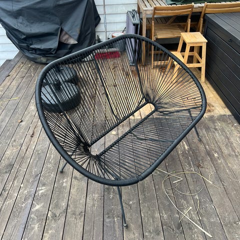 Loungestol / utestol i svart kunstrotting. Ingen merker.