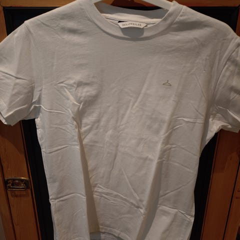 Holzweiler T-skjorte for dame i størrelse M. T-skjorten er i beige farge og laget av bomull. Klassisk modell med rund hals og korte ermer, egnet til hverdagsbruk alene eller under andre plagg.