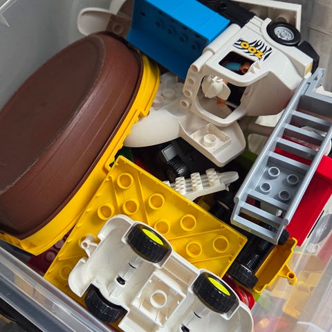 Mye forskjellig, både klosser, biler, m.m