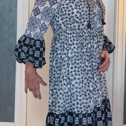 Veldig fin og lett tanger sommerkjole med smøring foran bristet. Har underskjørt så det ikke ser noe gjennom.
