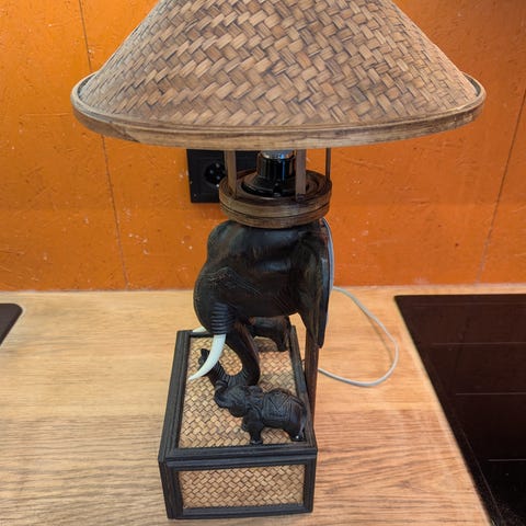 Liten elefant-lampe. Kjøpt på Clas Ohlson.