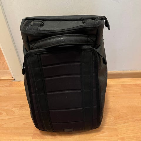 Selger en pent brukt romslig sekk som passer til hverdags og reise.