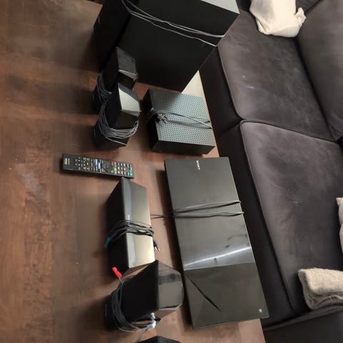 Microsoft Xbox 5.1 surroundanlegg i svart. Systemet består av en aktiv subwoofer og flere satellitthøyttalere, samt tilhørende kabler for tilkobling. Anlegget er utviklet for bruk med Xbox, men kan også kobles til annet kompatibelt lydutstyr via tilgjengelige tilkoblinger på baksiden av subwooferen. Egner seg til flerskanals lyd i spill, film og annen underholdning der 5.1-lyd støttes.