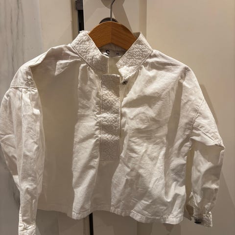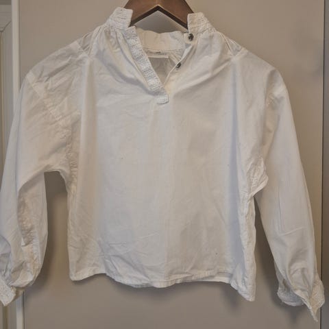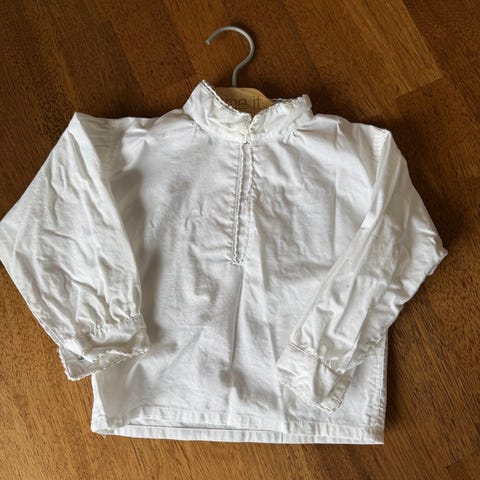 Brukt en gang å må kjøpe større størrelse i år. Har en mikroskopisk flekk og en liten nupp i stoffet. Skjorten er vasket men ikke strøket.