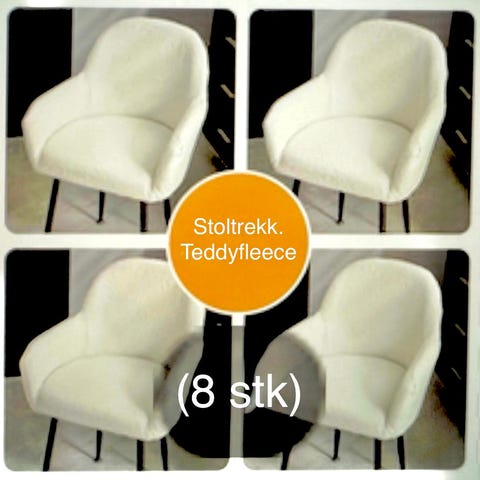Selger 6stk. stoltrekk i fløyelstoff. Nydelig grå farge. Trekkene er ubrukte. Jeg har like i annen farge. Sitter godt på stolen og går fint å vaske.