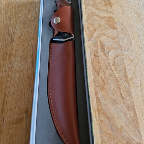 Ubrukt kniv selges. Lengde kniv 22 cm. Blad 11 cm.