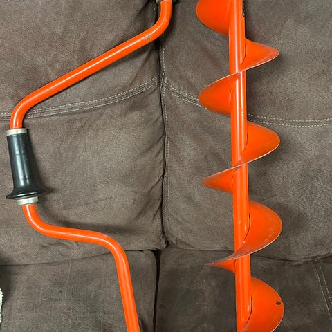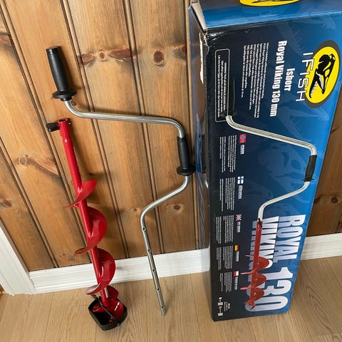 Nesten nytt isbor fra XXL - iFish. Størrelse 130mm. Isdybde maks 110cm. I to deler, festes enkelt sammen og kan variere lengde. Følger også med to nye blad, ubrukte. Nypris XXL for begge når jeg kjøpte er 1200kr. Kommer lett gjennom isen, brukt to ganger.