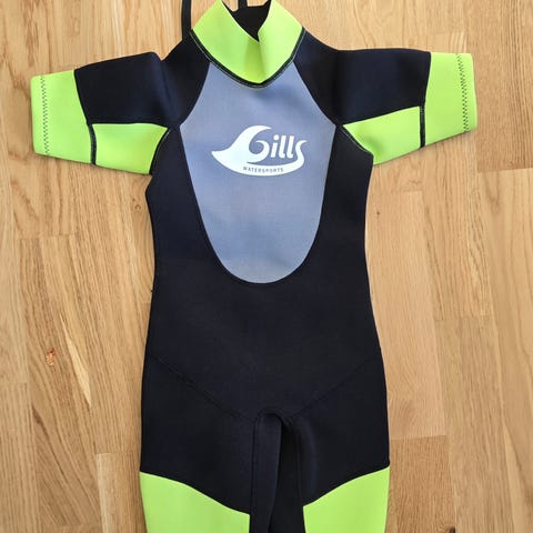 Pro Aqua kort våtdrakt for barn. Drakten har korte ermer og korte ben, størrelse 10 år. Måler ca 55 cm fra hals til skritt.