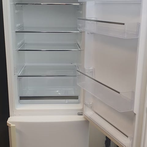 Pent, praktisk og plassgjerrig Whirlpool kombiskap (kjøleskap og fryser), med totalt nettovolum 273 liter. Kjøledel med glasshyller, grønnsaksskuff og dørhyller for oppbevaring av flasker og mindre varer. Frysedelen nederst har skuffer for organisert innfrysing og lagring av matvarer.