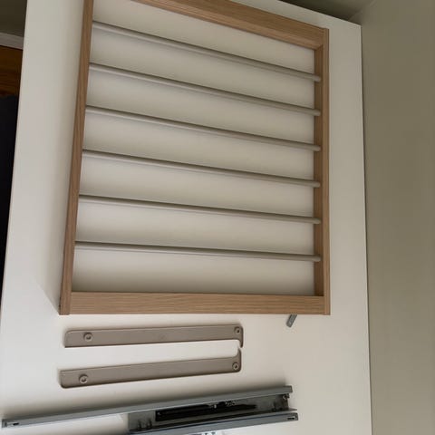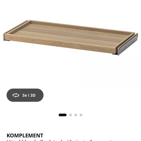 Selger hylleplate, uttrekkbar buksehenger og uttrekkbar hylleplate som passer til 50x58 pax fra IKEA