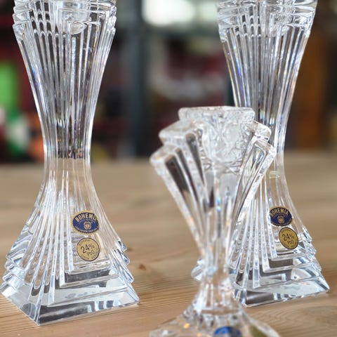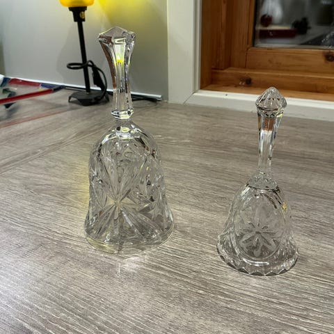 Selger to nydelige bjeller i ekte Bohemia krystall fra Tsjekkia. Bjellene har et klassisk, håndslipt mønster som gir fantastisk spill i lyset og den ikoniske, klare klanglyden som kjennetegner blykrystall av høy kvalitet.