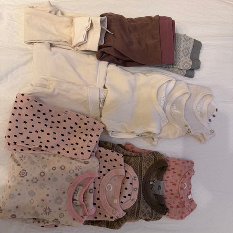 9 bukser 9 bodyer og en genser