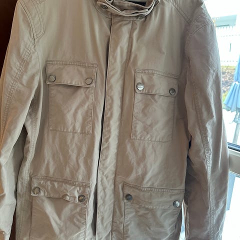 Mørk blå, lang ytterjakke fra Bruuns Bazaar. Ca 15-20 år gammel.