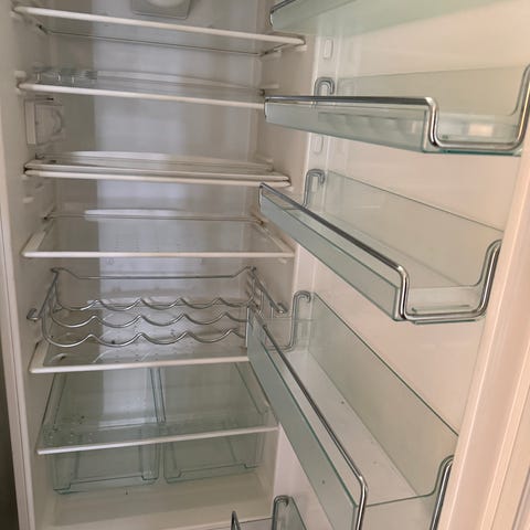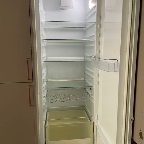 Veldig stort og veldig fint å kunne putte alt hva det måtte være inn i kjøleskap.