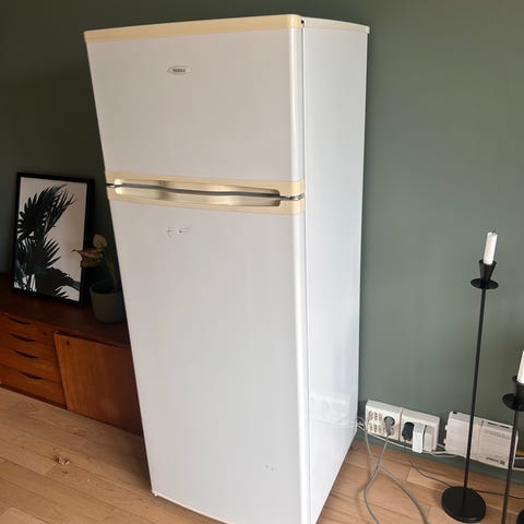 Electrolux kjøleskap og fryser side-by-side - godt brukt, men funker bra fortsatt. Plastikken er ødelagt på enkelte plasser - se siste bilder.